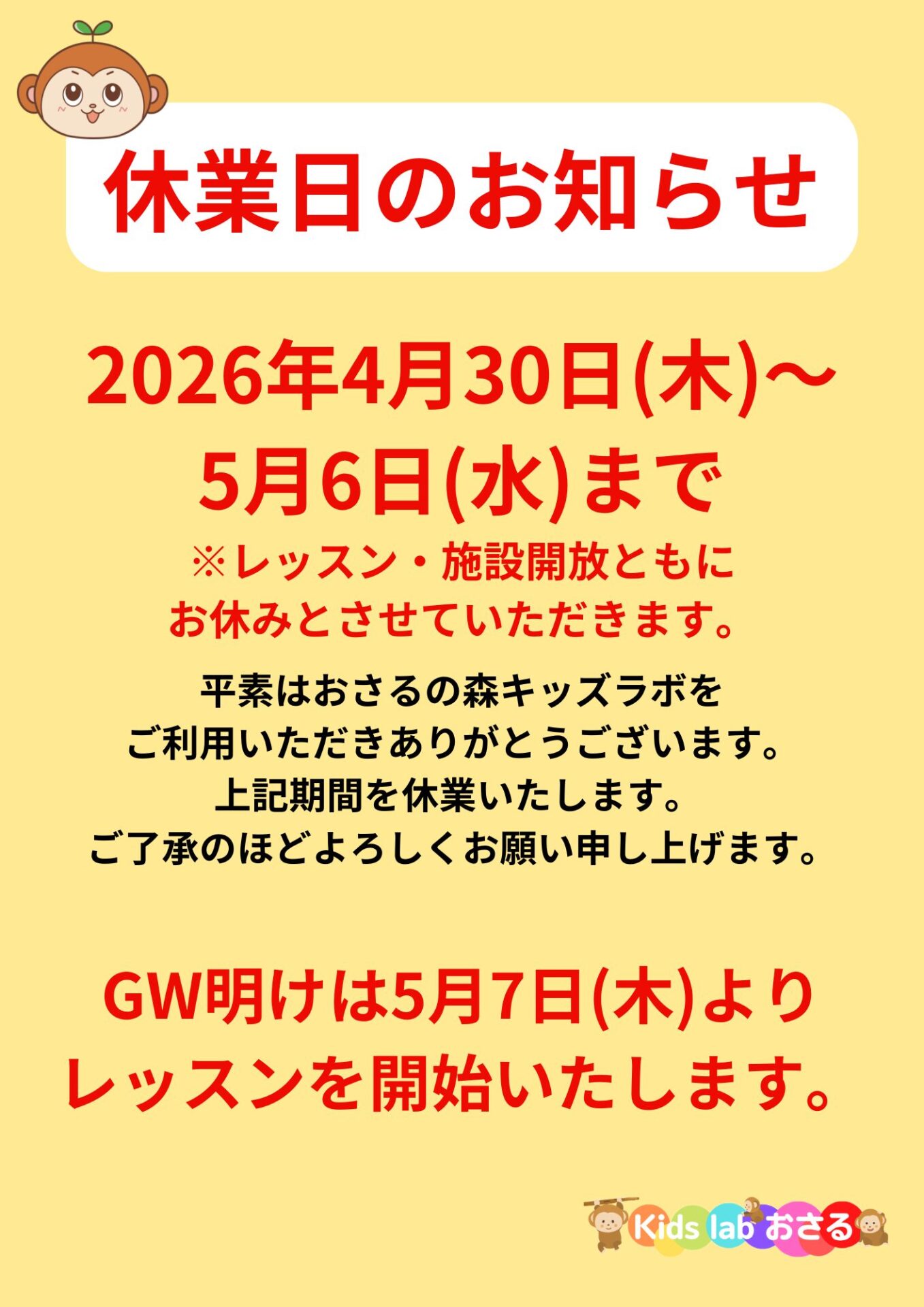 ※この期間はレッスン・施設開放ともにお休みとさせていただきます。