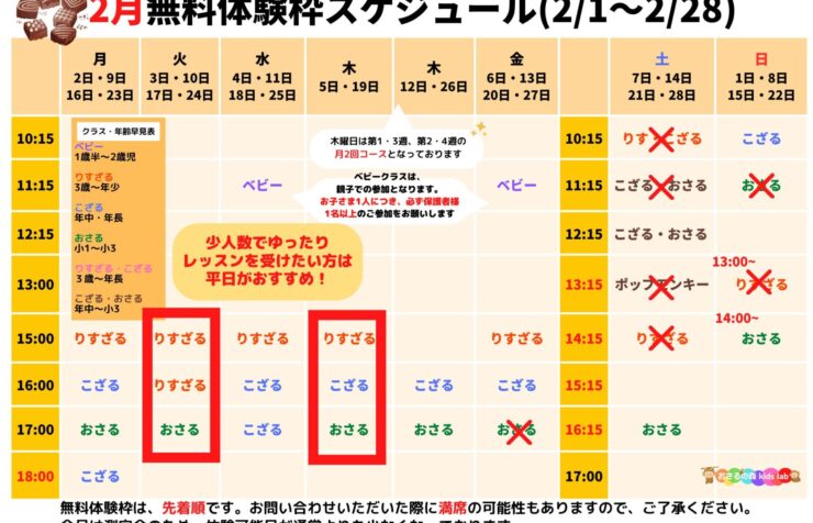 2月の無料体験・入会特典のお知らせ